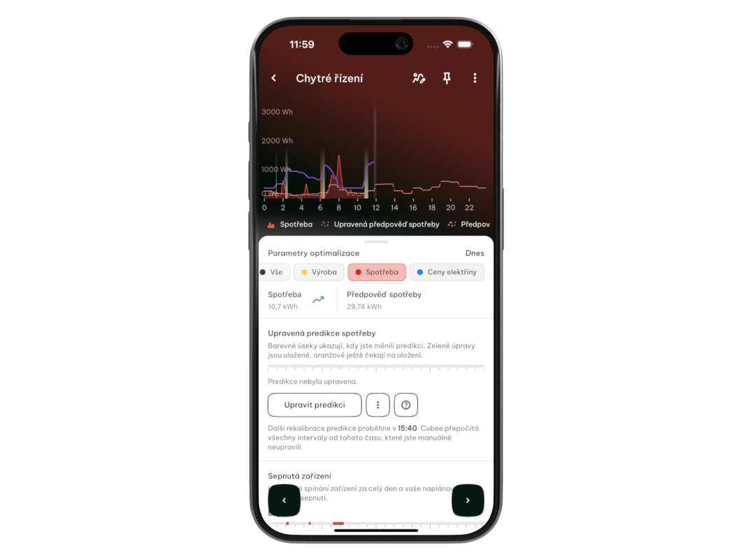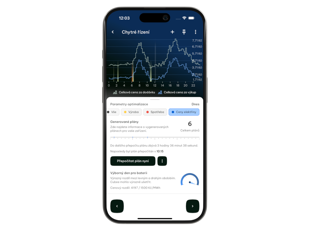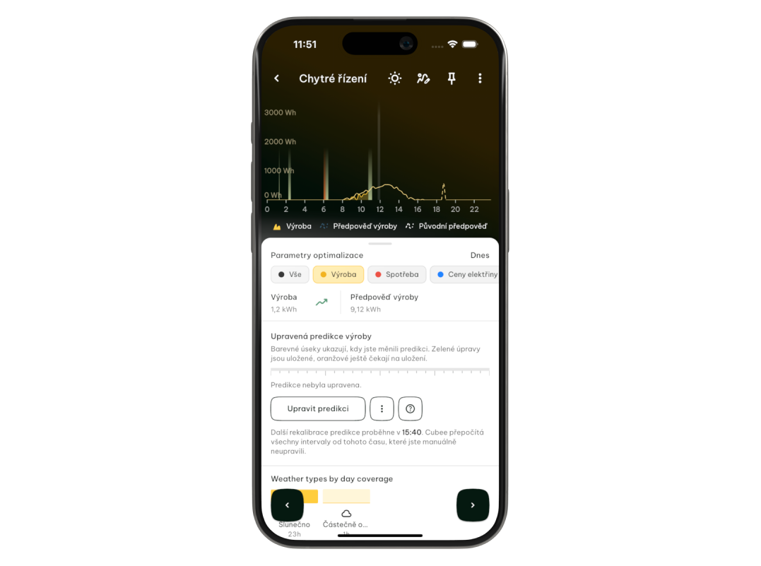 Nyní však Cubee přidává možnost zasahovat i do vstupních dat. Nepočítá Cubee s tím, že si přejete v průběhu dne nabít elektromobil? Zvedněte predikce spotřeby a Cubee najde nejlevnější čas, kdy získat energií na pokrytí. Změnilo se nečekaně počasí a panely vyrábí jinou hodnotu, než se původně předpokládalo? Upravte predikce výroby a Cubee hodnoty přepočítá a vytvoří přesnější plán.